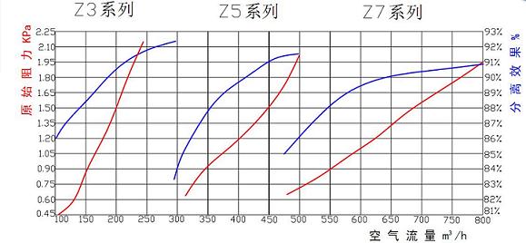 Z系列折返式空气预滤器性能曲线图: